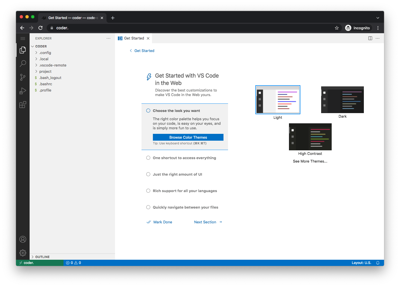 You can change the default theme if you wish. I'm going to choose the dark theme.