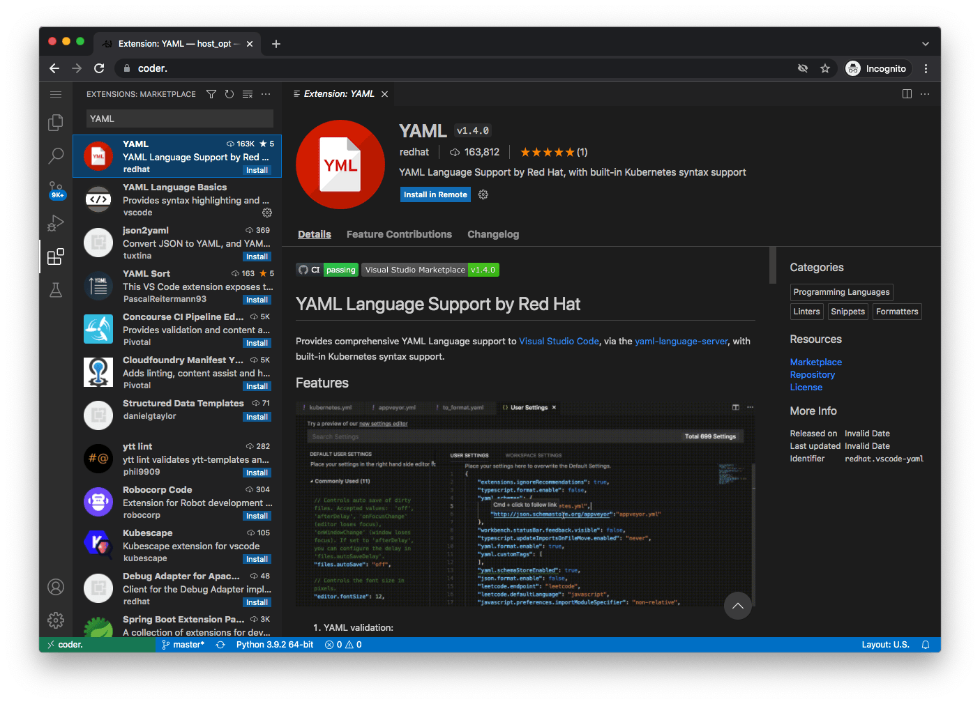 Click on the Extensions icon on the left, then type the name of the extension into the search box, and click the "install" button.